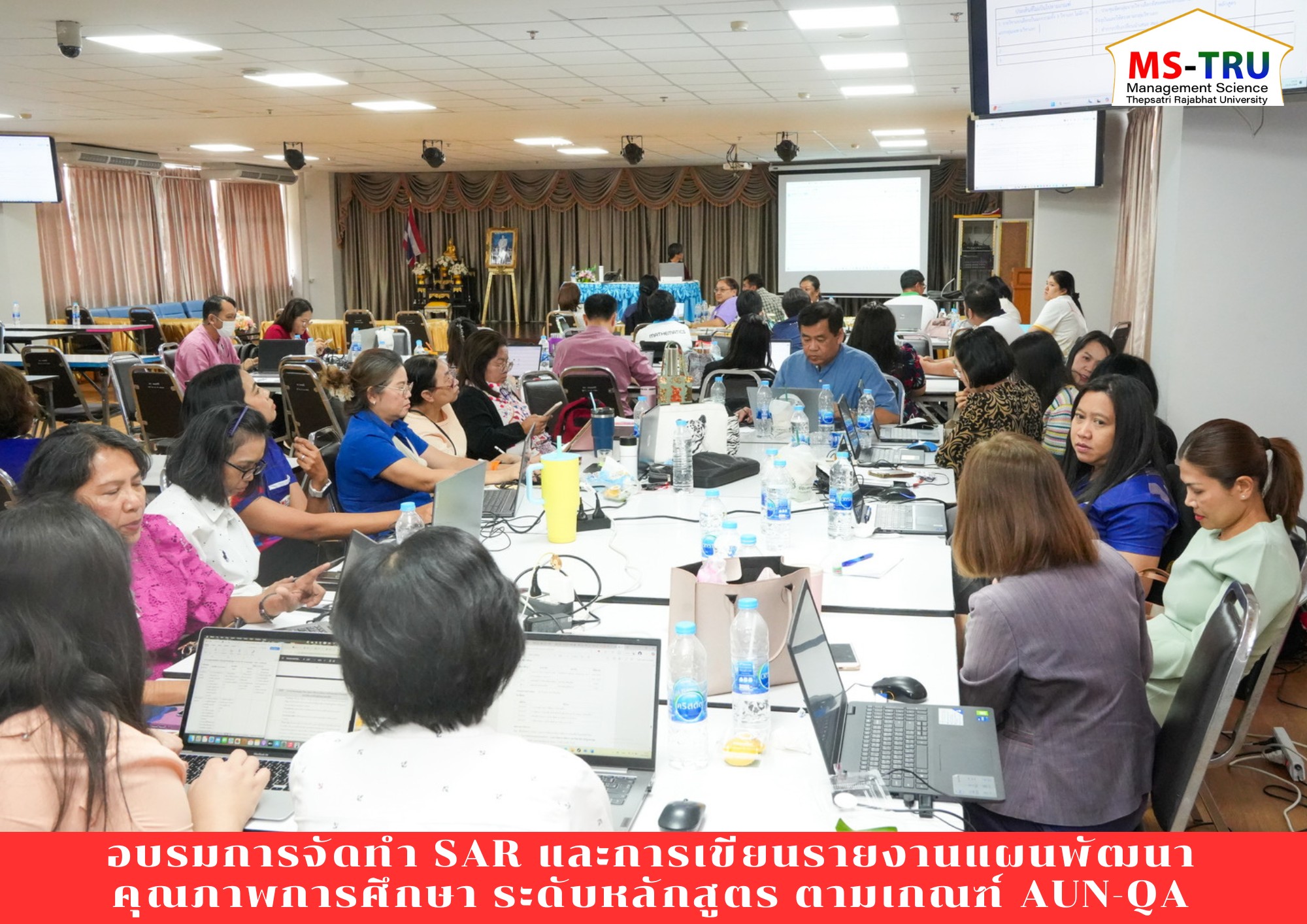 วันที่ 19-20 มีนาคม พ.ศ. 2568 ผศ.พรรณนิภา เดชพล คณบดีคณะวิทยาการจัดการ รองคณบดี ผู้ช่วยคณบดี คณาจารย์และบุคลากร คณะวิทยาการจัดการ เข้าร่วมอบรมเชิงปฏิบัติการ การจัดทำรายงานการประเมินตนเอง (SAR) และการเขียนรายงานแผนพัฒนาคุณภาพการศึกษา (Improvement plan) ระดับหลักสูตร ตามระบบประกันคุณภาพการศึกษาอาเซียน (AUN-QA) สำนักงานมาตรฐานและประกันคุณภาพการศึกษา สำหรับการอบรมครั้งนี้มีผู้บริหาร คณาจารย์ผู้รับผิดชอบหลักสูตร และบุคลากรที่เกี่ยวข้อง เข้าร่วมการอบรม จำนวน 160 คน เพื่อทำให้สามารถพัฒนาการบริหารจัดการหลักสูตรการเรียนการสอนให้สอดคล้องตามมาตรฐานสากล มีแนวทางในการประเมินตนเอง การเขียนรายงานการประเมินตนเอง (SAR) และการเขียนแผนพัฒนาคุณภาพการศึกษา (Improvement plan) ระดับหลักสูตร ได้อย่างสอดคล้องกับสาระของเกณฑ์ AUN-QA โดยมี รศ.ดร.นวลทิพย์ กมลวารินทร์ วิทยากรผู้เชี่ยวชาญด้านระบบการประกันคุณภาพการศึกษา เป็นวิทยากรการอบรม ณ ห้องประชุมชั้น 3 อาคาร 80 ปี มหาวิทยาลัยราชภัฏเทพสตรี
